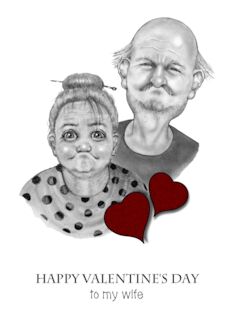 Happy Valentine's Day To Wife Humorous Old Couple Pencil Drawing