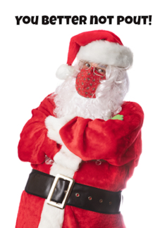 Merry Christmas Santa in Face Mask Saying Not To Pout Humor