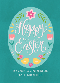 OUR Half Brother Easter Egg with Flowers Chicks and Hand Lettering