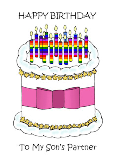 Happy Birthday to Partner of Gay Son Cartoon Cake and Candles