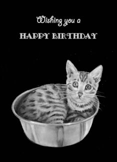 Happy Birthday General With Kitten in Kitchen Bowl Hope It's Purrfect
