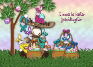 Easter for Granddaughter Moose with Colorful Bunnies and Eggs