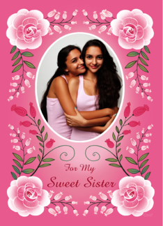 Sister Custom Photo Happy Valentine's Day Pink Roses Floral