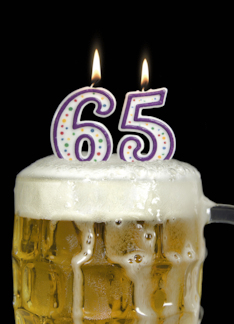 Polka Dot Candles for 65th Birthday in Beer Mug on Black