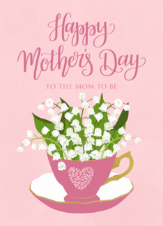 Happy Mothers Day to the Mom To Be Pink Tea Cup of Flowers