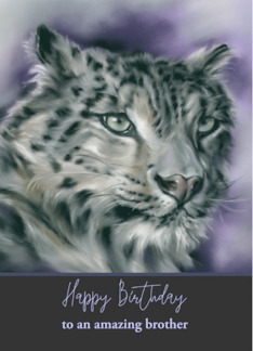 Custom Relative Birthday for Brother Snow Leopard Wildlife Pastel Art