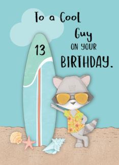 Age 13 Guy Birthday Beach Funny Cool Raccoon in Sunglasses