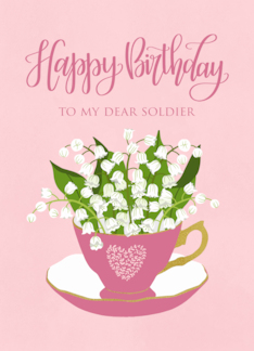 Birthday to MY Soldier with Tea Cup of Flowers and Hand Lettering