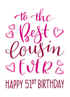 Best Cousin Ever 51st Birthday Typography in Pink Tones