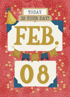 February 8th Birthday Date Specific Happy Birthday Party Hat and Stars