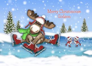Christmas For a Young Godson Ice Skating Moose and Mice