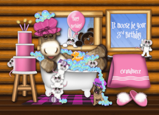 3rd Birthday For a Grandniece Moose in Tub Forrest Animals