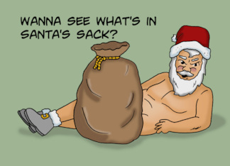 Humorous Adult Christmas Card With Santa Wanna See What's In My Sack