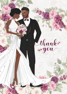 General Wedding Thank You Black Bride and Groom Plum Blank