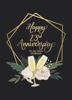 Husband Happy 23rd Anniversary with Frame Wine Glasses and Peonies