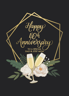 Dad and Step Mom 46th Anniversary with Frame Wine Glasses and Peonies