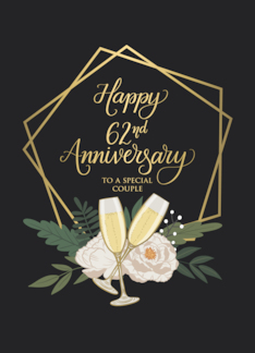 Couple Happy 62nd Anniversary with Frame Wine Glasses and Peonies