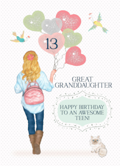 Great Granddaughter 13th Birthday to Awesome Teen Girl with Balloons