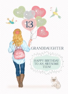 Granddaughter 13th Birthday to Teen Girl with Balloons