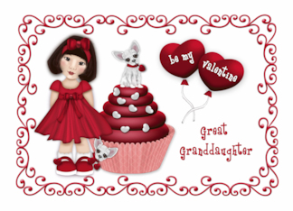 Valentine for a Asian Great Granddaughter Girl Puppy on a Cupcake