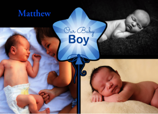 3 Photo Custom Name Birth Announcement Blue Star Balloon