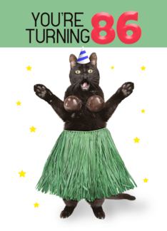 Happy 86th Birthday Funny Cat in Hula Outfit Humor
