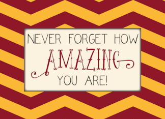 Thinking of You at College Amazing Gold and Maroon Chevron Stripes