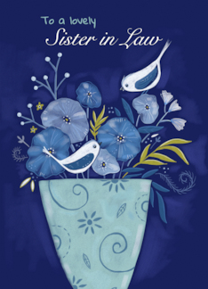 Sister in Law Birthday Birds on Floral Vase