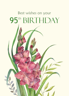 95th Birthday Wishes Watercolor Peachy Gladioli Flower Illustration