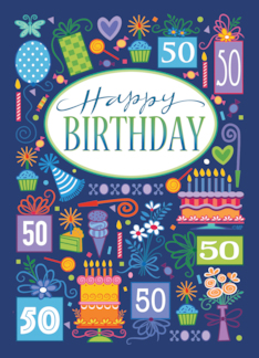 50th Birthday Blue Cake Cupcake Presents Balloon