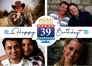39 Striped Birthday Cake And Candles With 4 Custom Photos