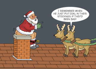 Humorous Adult Christmas With Santa Taking A Dump In The Chimney