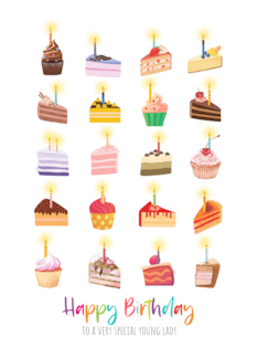 Slices of Cake with Candles Lit Birthday for Special Young Lady