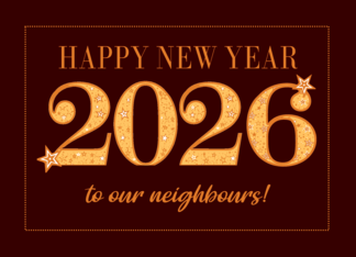 For Neighbours New Year 2026 Gold Effect on Dark Red with Stars