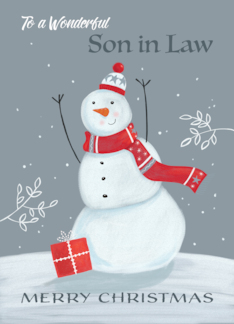 Son in Law Merry Christmas Grey and Red Snowman
