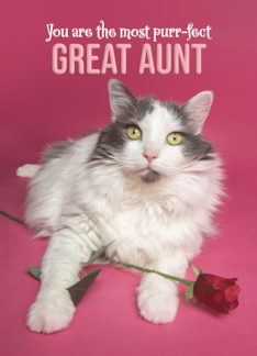 Happy Valentines Day Great Aunt Cat WIth Red Rose Photograph