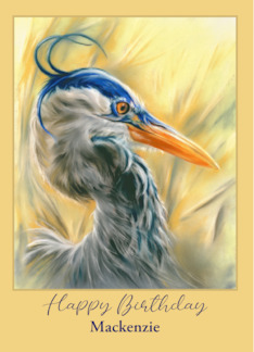 Birthday for Personalized Name Blue Heron in Reeds Pastel Bird Art M