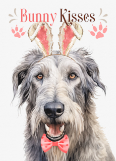Easter Bunny Kisses Irish Wolfhound Dog in Bunny Ears