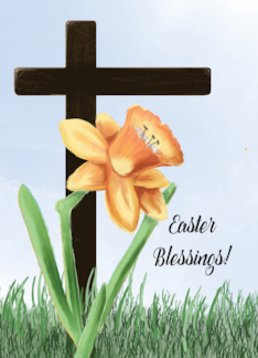 Easter Blessings Daffodil Over Cross