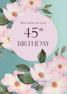 For 45th Birthday Watercolor Pink Roses Botanical Flower Painting