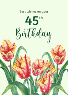 45th Birthday Wishes Watercolor Bright Yellow Parrot Tulips Painting