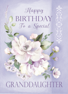 Granddaughter Birthday Purple Floral Rose and Greenery Damask