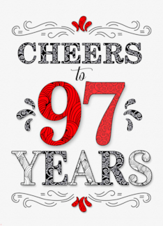 97th Birthday Cheers in Red White and Black Patterns