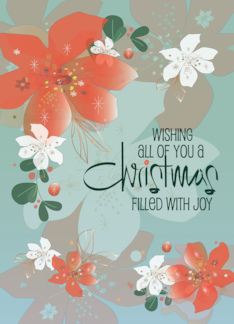 Hand Lettered Christmas For All of You with Red and White Poinsettias