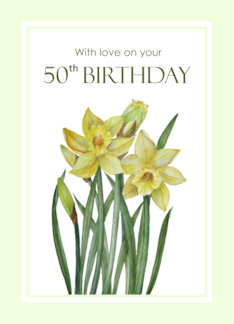 For 50th Birthday Watercolor Daffodils Botanical Floral Illustration