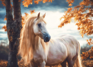 Horse Blank Note With Fine Art Horse in Fall Autumn Colored Leaves
