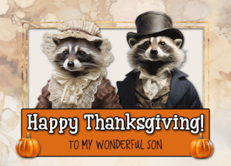 Son Thanksgiving Pilgrim Raccoon Couple