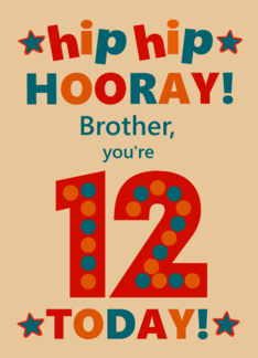 For Brother 12th Birthday Bright Colours Hip Hip Hooray
