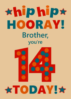 For Brother 14th Birthday Bright Colours Hip Hip Hooray