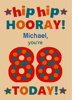 Custom Name 88th Birthday Bright Colours Hip Hip Hooray